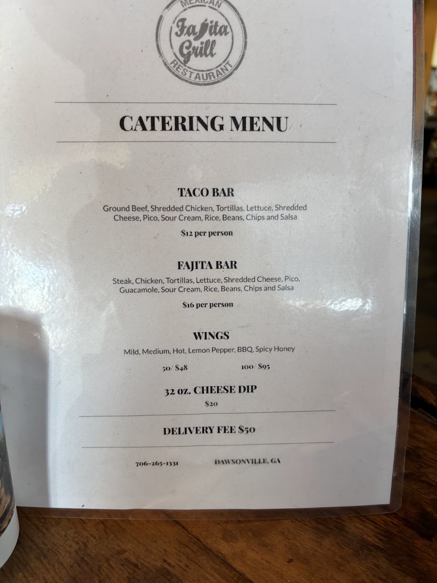 Fajita Grill 2 is a Mexican restaurant located at 384 Highway 53 E Dawsonville, GA. This casual dining spot offers a wide range of vegetarian options and caters to group gatherings and families. With amenities like outdoor seating, a full bar, and Wi-Fi, it provides a comfortable dining experience for all. The menu features traditional Mexican dishes prepared with fresh ingredients and bold flavors that will leave you craving more. Whether you're looking for a quick lunch, a family dinner, or catering for an event, Fajita Grill 2 is the perfect spot to satisfy your Mexican food cravings.